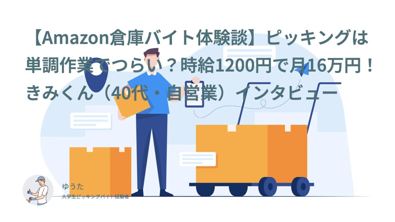 【Amazon倉庫バイト体験談】ピッキングは単調作業でつらい?時給1200円で月16万円!きみくん(40代・自営業)インタビュー